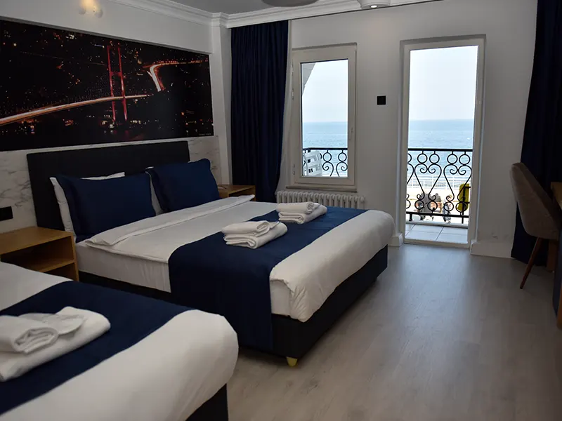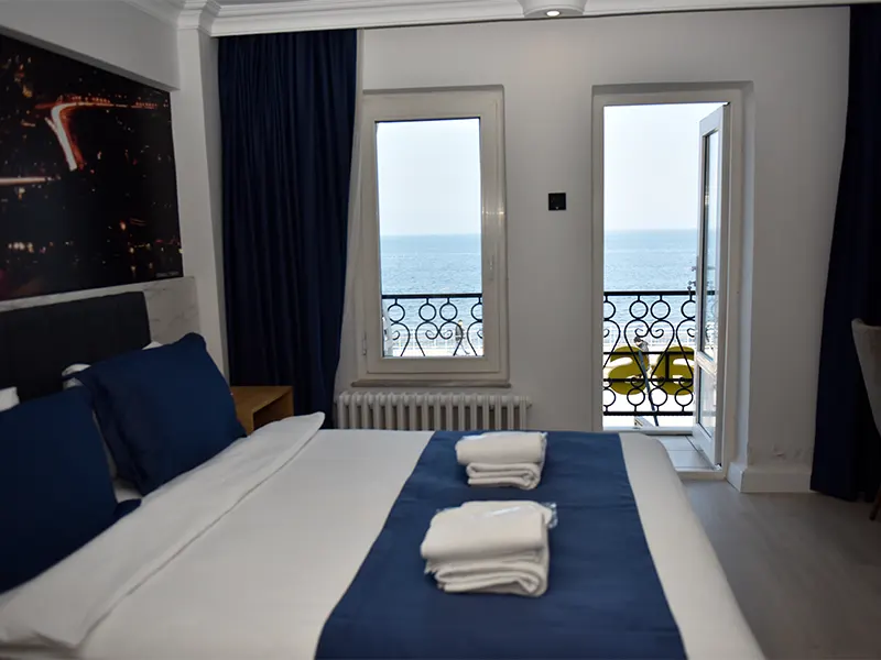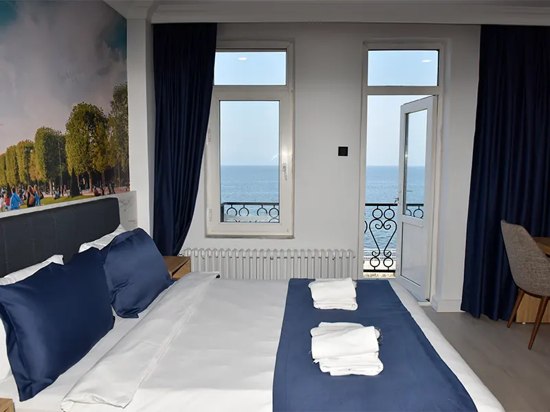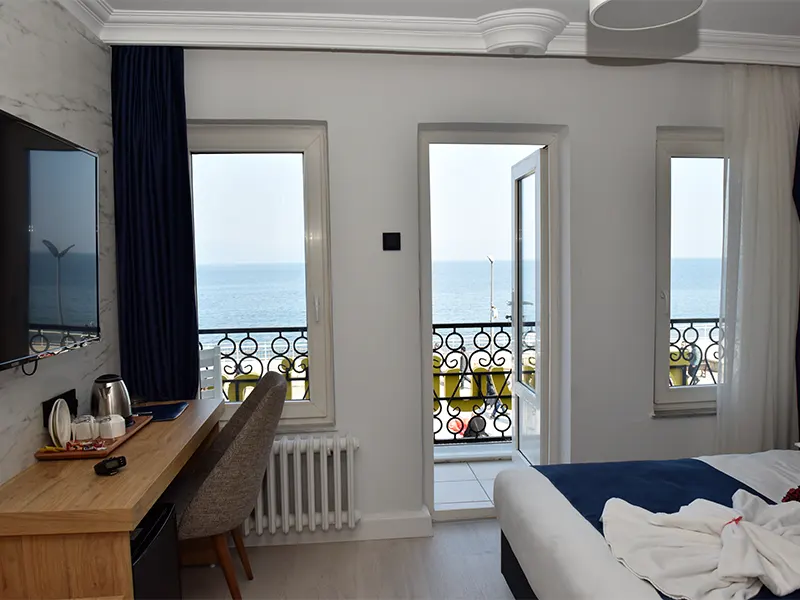Standart deniz manzaralı odamızda rahatlamak için ideal bir ortam sizi bekliyor. Bu özel oda, göz alıcı bir deniz manzarasına sahip olup konforlu bir konaklama deneyimi sunmaktadır.