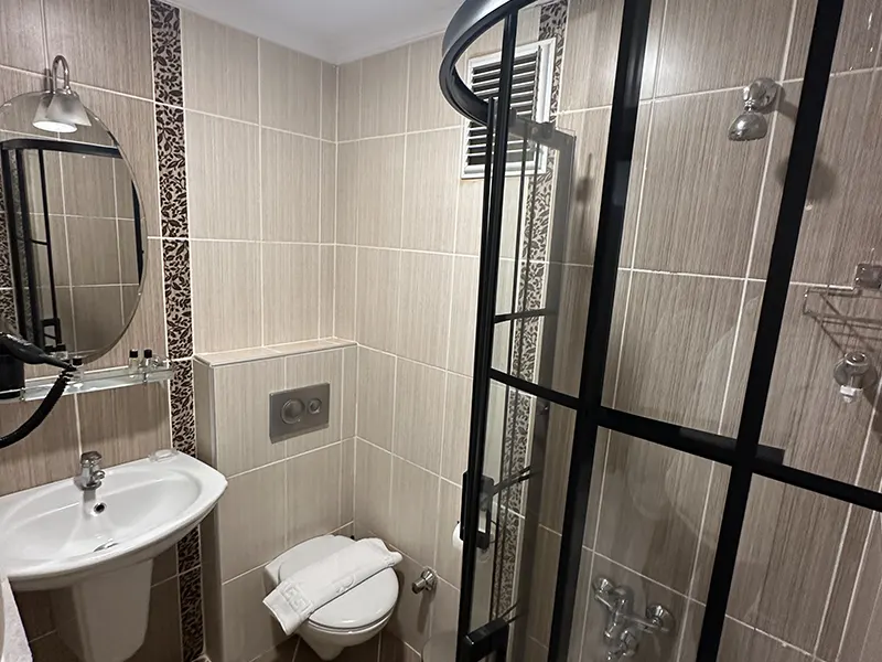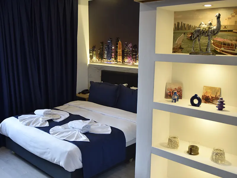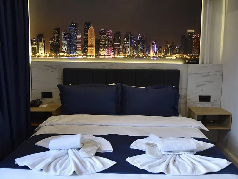 Odamızın iç tasarımı modern ve şık detaylara sahiptir. Konforlu yatağınızda dinlenirken, büyük pencerelerden şehrin canlı atmosferini izleyebilirsiniz. Odamızın her köşesi, sadece konaklamanızı değil, aynı zamanda şehirle bütünleşmenizi sağlamak için özenle düşünülmüştür.